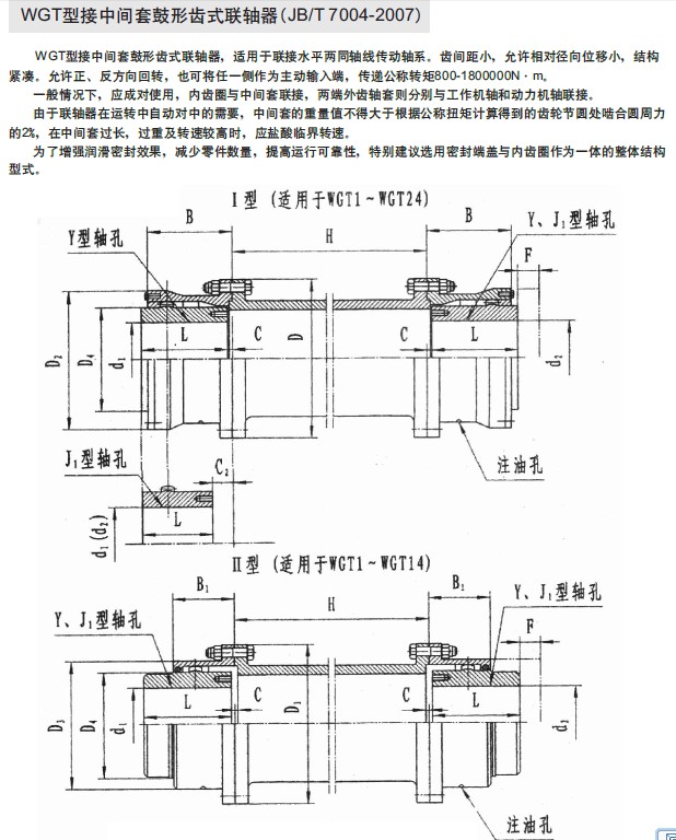 WGT型接中間套鼓形齒式聯(lián)軸器的特點: