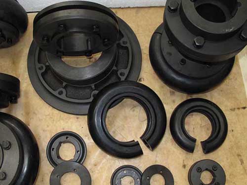 輪胎聯軸器分為凸型和凹型兩大類,凸型又分為帶骨架整體式,無骨整體式和徑向切口式三種。它們的共同特點都是將輪胎環(huán)用螺栓來連接兩半聯軸器以實現兩軸的連接.輪胎環(huán)內側用硫化方法與鋼質骨架粘接成一體,骨架上的螺栓孔處焊有螺母。裝配時用螺栓與兩半聯軸器的凸緣連接,依靠擰緊螺栓使輪胎與凸緣端面之間產生的摩擦力來傳遞轉矩,輪胎環(huán)工作時發(fā)生扭轉剪切變形,故輪胎聯軸器具有很高的彈性,補償兩軸相對位移的能力較大,并有良好的阻尼,而且結構簡單、不需潤滑、裝拆和維護都比較方便。