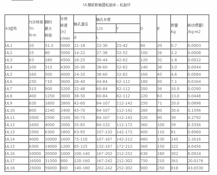 UL型輪胎式聯(lián)軸器是一種高彈性聯(lián)軸器,具有良好的減震緩沖和的軸間偏移補(bǔ)償性能,工作溫度-20~80攝氏度,轉(zhuǎn)遞轉(zhuǎn)矩10~20000N.M,適于潮濕、多 塵、有沖擊、振動(dòng)、正反轉(zhuǎn)多變和起動(dòng)頻繁的工作條件,并全拆裝方便,因?yàn)閺椥栽且徽w的輪胎體,拆裝維修方便、不需潤(rùn)滑、。
