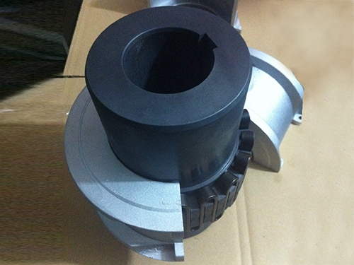 JSD型單法蘭聯(lián)接型聯(lián)軸器主要結構是由兩個半聯(lián)軸節(jié),兩個半外罩,兩個密封圈及蛇形彈簧片組成,它是靠蛇簧嵌入兩半聯(lián)軸節(jié)的齒槽內來傳遞扭矩,聯(lián)軸器以蛇形彈簧片嵌入兩個半聯(lián)軸節(jié)的齒槽內,來實現(xiàn)主動軸與從動軸的鏈接。運轉時,是靠主動端齒面對蛇簧的軸向作用力帶動從動端,來傳遞扭矩,如此在很大程度上避免了共振現(xiàn)象發(fā)生,且簧片在傳遞扭矩時所產生的彈性變量,使機械系統(tǒng)能獲得較好的減振效果,其平均減振率達36%以上。