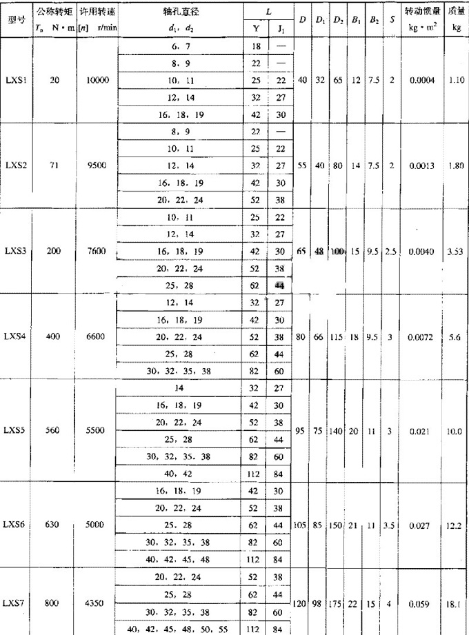XLS型星形彈性聯(lián)軸器規(guī)格及參數(shù):